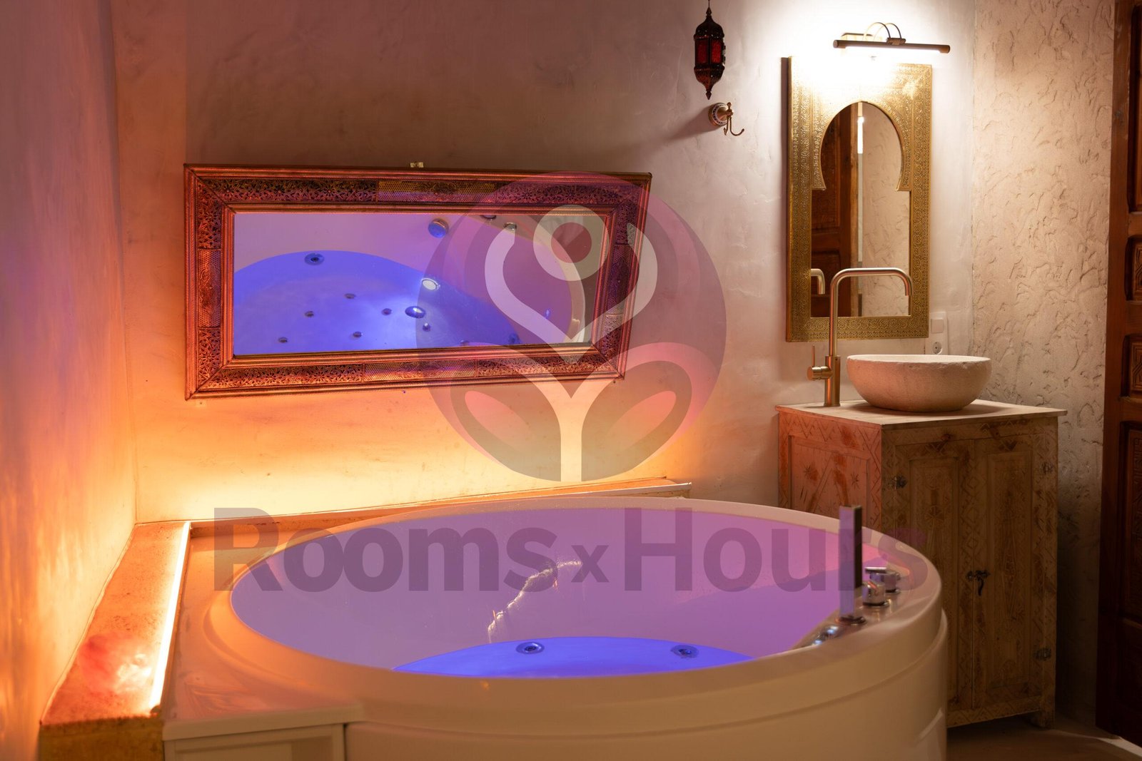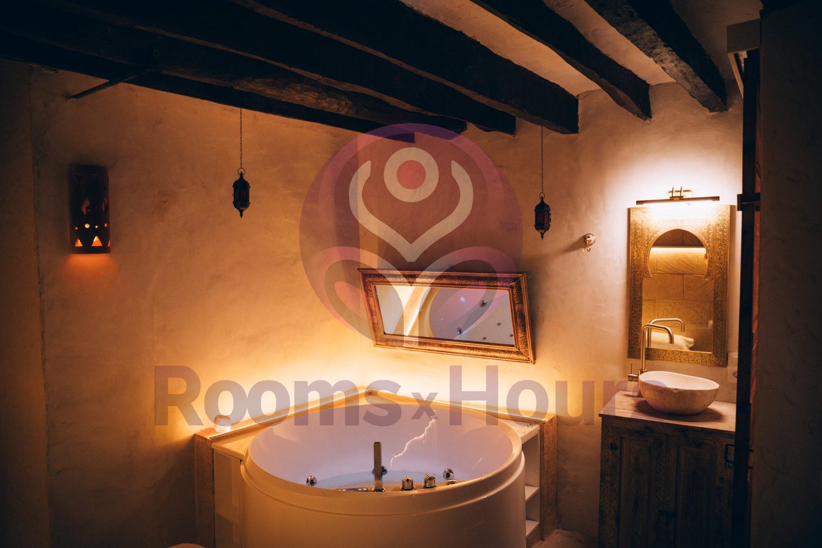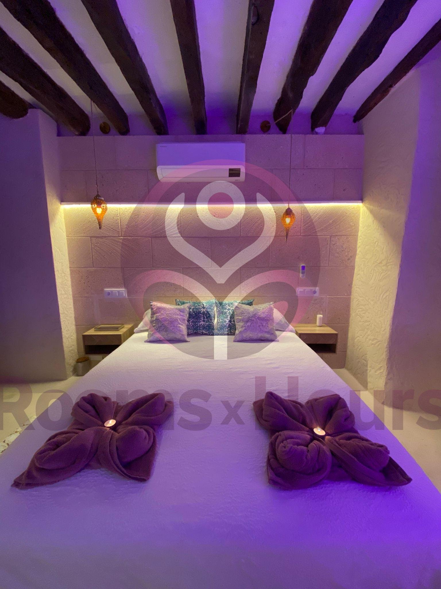 Su cuidada estética de inspiración marroquí 🕌 envuelve con una atmósfera cálida, sugerente y acogedora. La iluminación tenue, los detalles artesanales y las texturas crean el escenario perfecto para desconectar del exterior y centrarse únicamente en disfrutar en pareja ❤️.